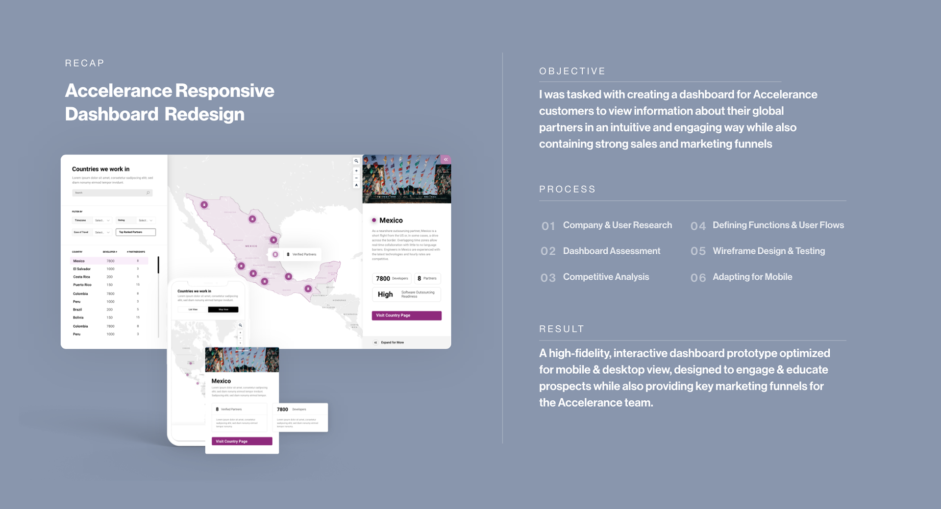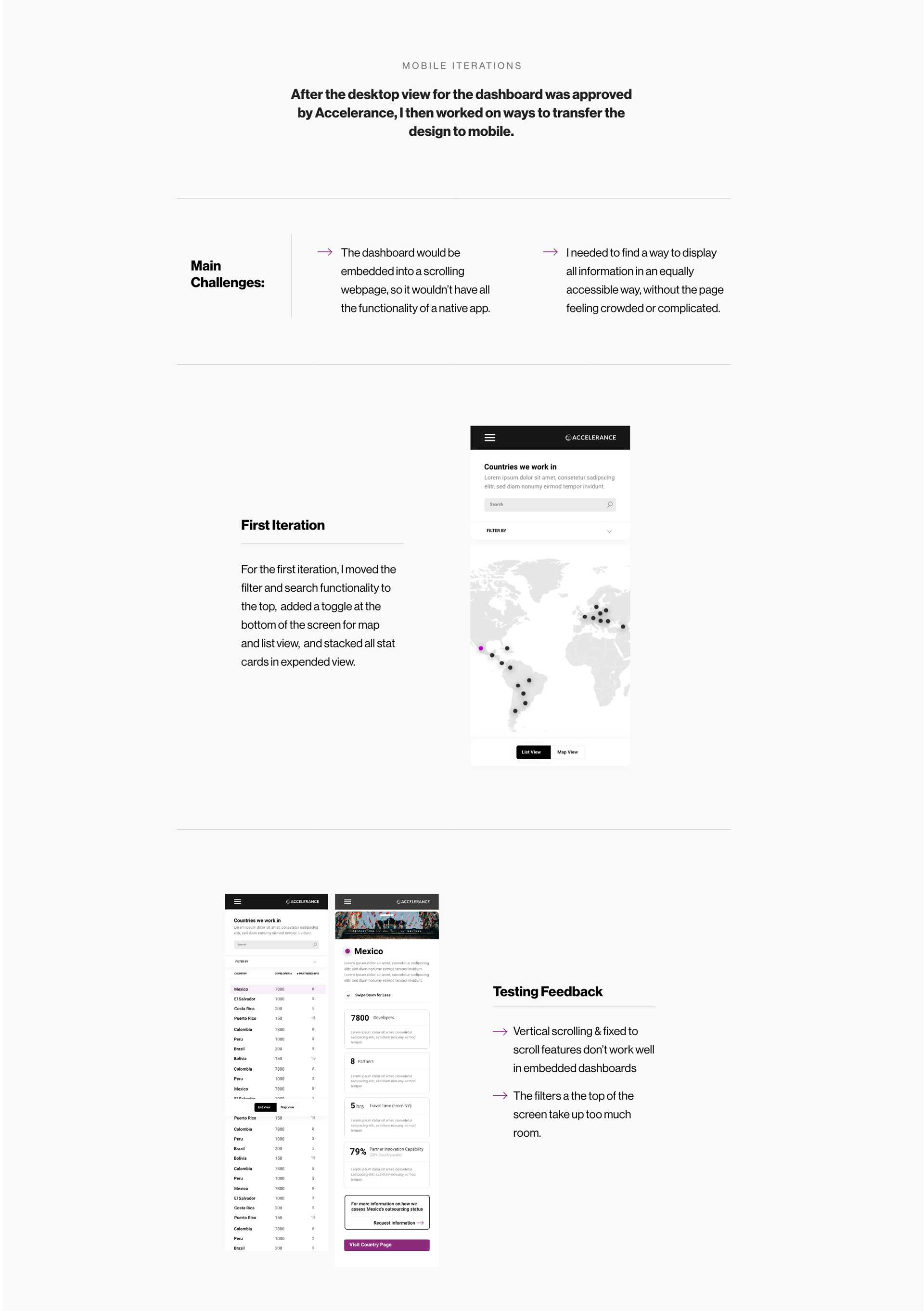 Redesigning an interactive map dashboard for desktop and mobile view.